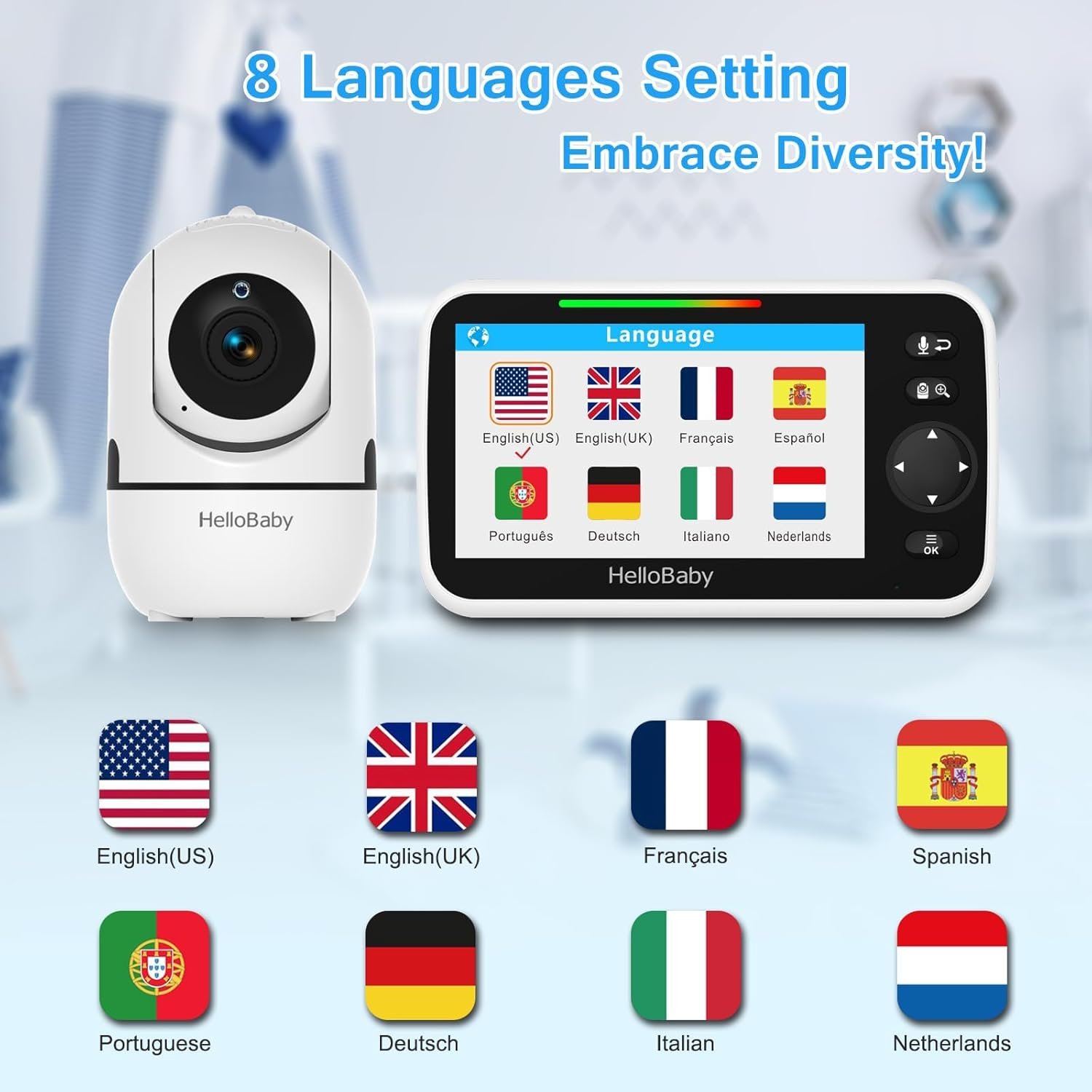 The HelloBaby HB6550Pro offers essential peace of mind with a large 5-inch display and a secure, hack-proof non-WiFi connection.1 Enjoy total nursery visibility using the remote Pan-Tilt-Zoom camera, clear two-way audio, and reliable temperature monitoring.2 Discover why this highly-rated monitor is the secure, feature-rich choice for your family—click to read our full review!